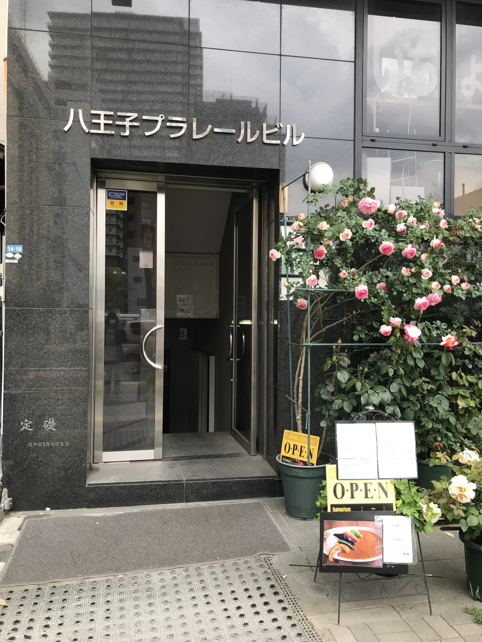 そして導かれるように八王子八幡町の隠れ家的カレー店『ハイジ』さんのページにたどり着いたのです。ここだ!と確信し、秒で注文を済ませ、わずか10分後にはハイジさんのあるビルの前に到着していました。看板はかわいいし写真のカレーは美味しそうだしお腹は空いているしで感情がぐちゃぐちゃになりました。