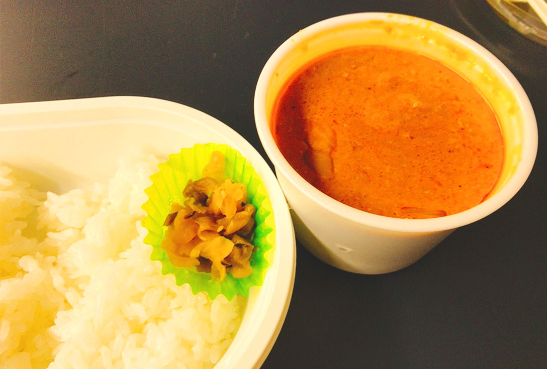 カレーとご対面です!もちろん食べる前にはアルコール消毒をきちんとして、いただきます~
