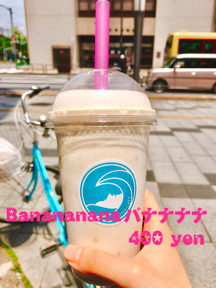 ネーミングが気になって注文させて頂いたバナナナナは、15分以内にお飲みくださいとのことでしたのでデポに帰る前に味見させて頂いたのですが、濃い!飲む冷やしバナナという感じで、これだけで朝ご飯になってしまう位ボリューミーでした。甘さも控えめで、私は果物のバナナは苦手なのですが、これなら美味しく飲めました♬