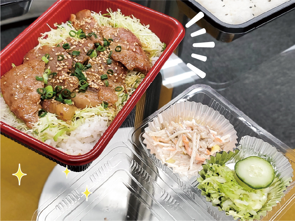 1人は、豚焼肉スタミナ重。豚焼肉スタミナ重は、サラダが別盛りになっていますね!