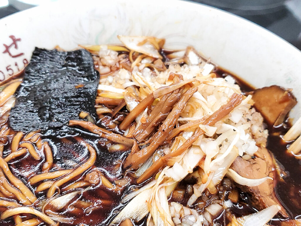 八王子ラーメンの特徴である玉ねぎがたっぷりで、細麺との相性もばっちりでした。