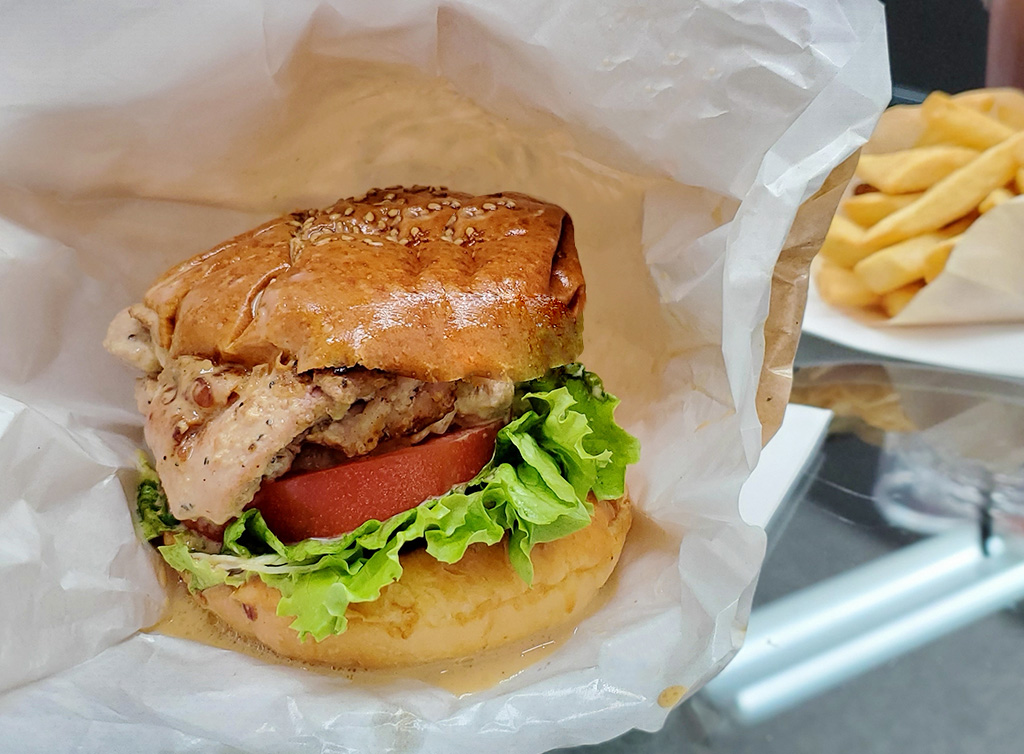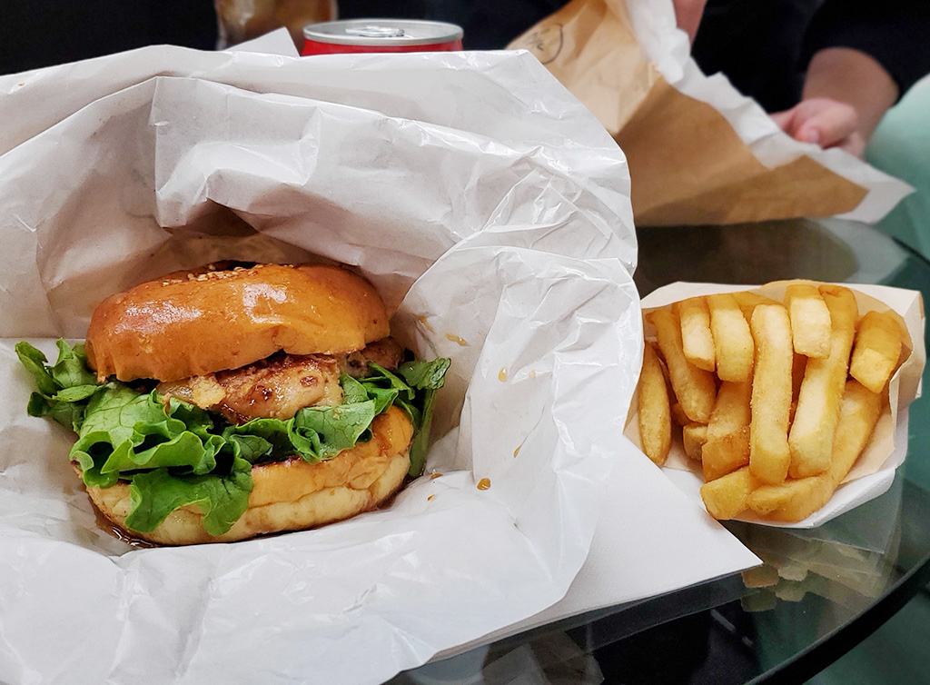 スパイスの利いた肉厚のチキンとバンズの相性が抜群です。