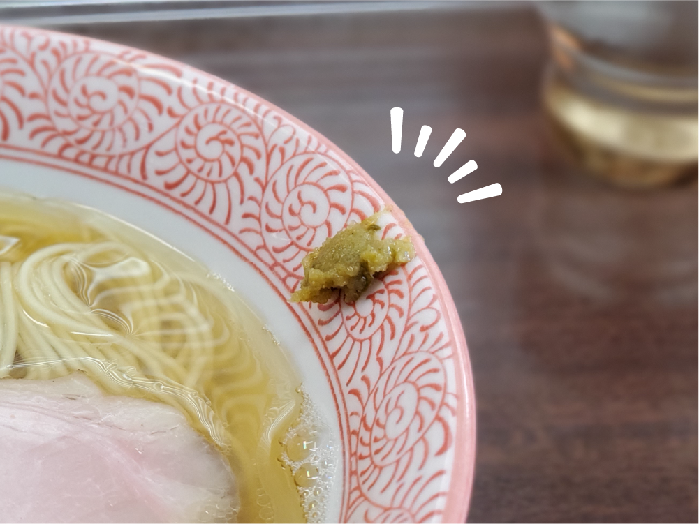 スープにといて一緒に食べたら、煮干しと塩との相性がとても抜群で、ラーメンに柚子胡椒を入れるって人生で初めてだったので、とても嬉しい気持ちになりました。