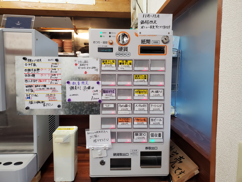 お店の入り口の横に、券売機があります。