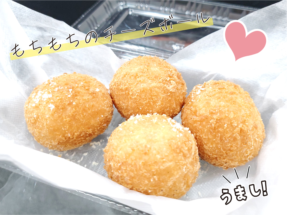 チーズボールは外はカリカリで、中はもちもちで美味しかったです。