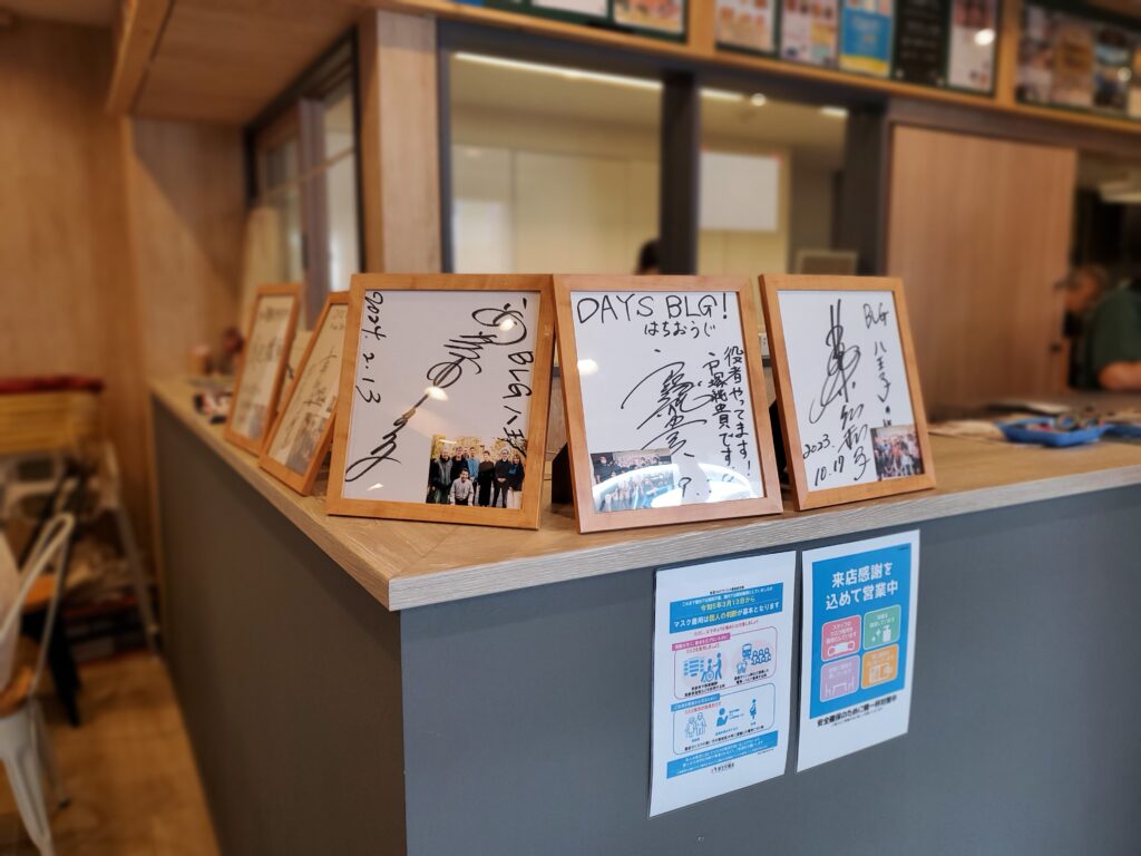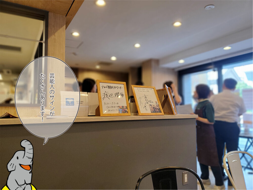 カウンターの上には、芸能人や、テレビ取材のサインがたくさん飾られていました。