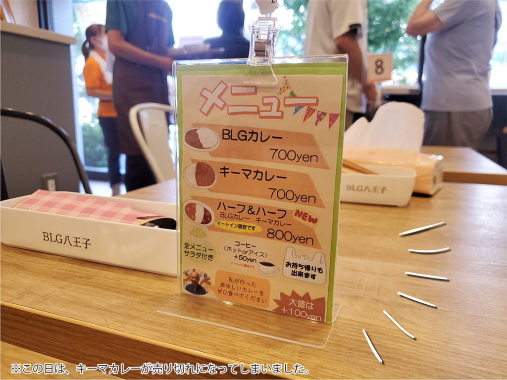 メニューは3種類ありますが、この日は、キーマカレーが売り切れてしまった関係で、BLGカレーのみの販売になっておりました。もうちょっと早く行けばよかったです!