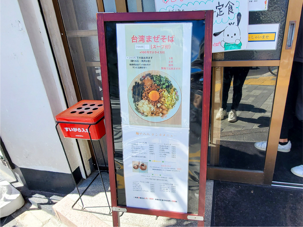 お店の入り口の前に、メニューが掲示されているので、お店が混雑している時などは、外で先にメニューを決めたりできますね!